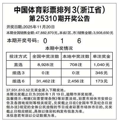中国体育彩票排列3(浙江省)