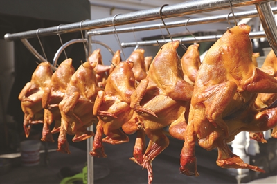 她第一次吃到的熏鸡,做法跟现在有些不同。先腌制,再蒸,然后烟熏——熟透的鸡挂在通风的地方,用报纸包起来。“想吃的时候,把报纸扒拉开,拿刀刮一点鸡肉下来。”叶爱娥说,“这样不太卫生。”