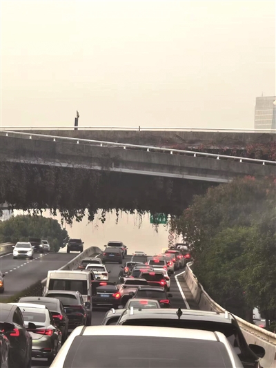 昨天早上7点41分,时代高架转入复兴大桥排队车辆。 网友“萧爷”供图
