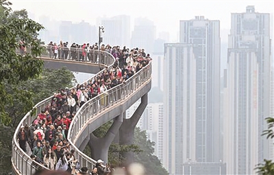 11月24日,人们在重庆半山崖线鹅岭栈桥观光。近日,重庆半山崖线鹅岭栈桥正式对外开放。该栈桥全长460米、宽3米,最高处距地面28米,依天然崖壁而建,将鹅岭公园与佛图关公园连为一体,独特的观江视野使其成为重庆旅游观光的新晋地标。据新华社