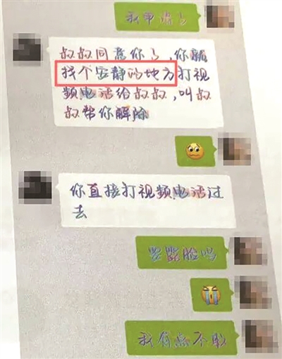 门外,母亲焦急敲着门。门内,女儿手机屏幕弹出一句“不准告诉家长,不然就逮捕他们”,女儿哭着不肯开门……