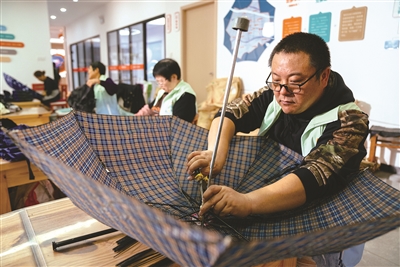 萧山伞业协会师傅在修伞 记者 肖宽 摄