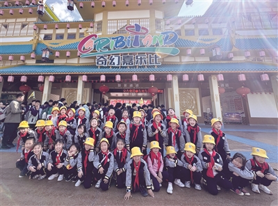 今天,太阳公公笑得特别灿烂,我们终于要去秋游啦!大巴车像一条胖胖的鲸鱼,载着我们的笑声,一路奔向奇幻嘉乐比乐园。