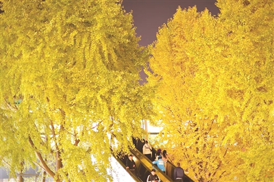 杭州大厦人行天桥扶梯旁的银杏 记者 江玥 摄
