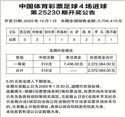 中国体育彩票足球4场进球