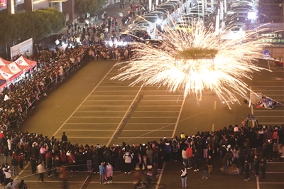 不仅如此,文化节还呈现一系列特色活动。火壶表演的惊险刺激、飞天凤凰的灵动飘逸、非遗打铁花的璀璨夺目、烟花瀑布的浪漫绚烂,为现场观众带来多感官的娱乐体验。快乐小丑、杂技流星、功夫熊猫、太空漫步等互动节目则深受亲子家庭喜爱,让节日氛围更加热烈。美食方面,全品类各地特色小吃数百家齐聚现场,从传统风味到网红美食应有尽有,从本地特色到国际范,满足村民游客的味蕾需求。