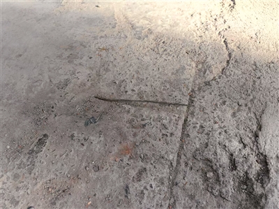 昨天上午,橙柿直通车记者来到现场勘查,在水泥地上找到了那根引发担忧的钢丝。钢丝露出地面约20厘米,直径约5毫米,经尝试,发现其质地牢固、不易弯折。由于钢丝细且颜色与水泥地面相近,横亘于地不易被察觉,而该处又是单元门口的必经之路,行人经过时极易被绊倒,存在明显的安全隐患。
