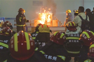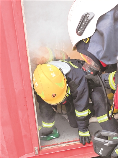 昨天上午,杭州消防开展建筑火灾模拟场景训练,本报两位记者佩戴专业救援设备,体验了真烟真火逃生场景。