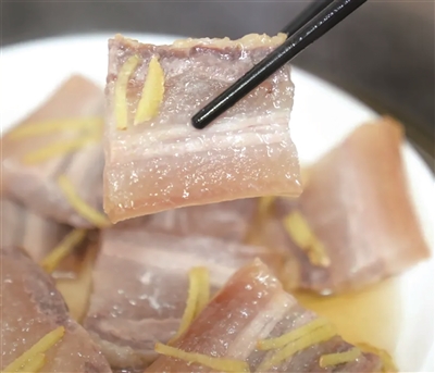 经过四五天的大太阳晾晒,咸肉表面已经接近暗红的琥珀色,阳光下微微泛起晶莹的光泽。