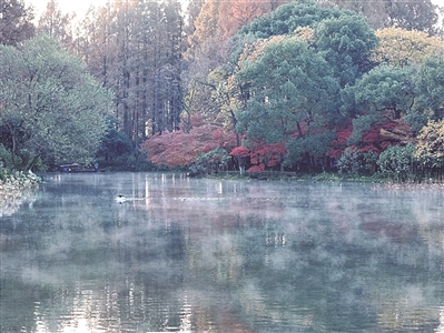 当下的杭州,景色别有情致,银杏、梧桐、无患子……纷纷为大地披上了“黄金甲”。早晨的西湖更是雾气弥漫,犹如仙境。