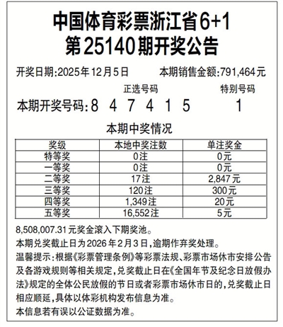 中国体育彩票浙江省6+1