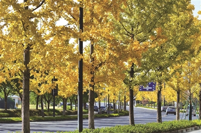 南六路位于湘湖三期,紧靠湘湖金融小镇,全长1.3公里,东接风情大道,西连湘湖花海,两侧种着330多棵银杏树。