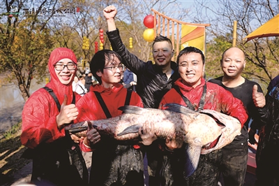 结束后,各队渔获集中称重,重达76斤的“西溪鱼王”惊艳亮相,现场还评选出3名“锦鲤”及一支获胜队伍。“摸鱼好汉”们手捧新鲜渔获,笑容灿烂。值得一提的是,“西溪鱼王”随后被放回鱼塘,寓意“年年有余、生态永续”。
