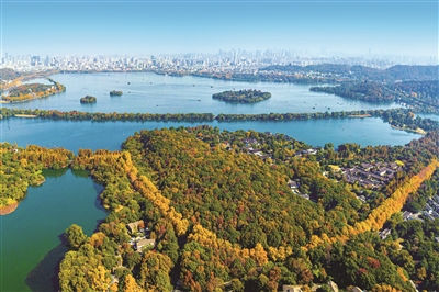 西湖之畔的丁家山,风景如画。 本版摄影 记者 陈中秋