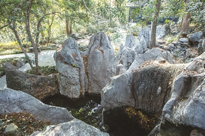 现在丁家山上并非总能听到水池里的声音,“潜岩”旁有个小瀑布,但不一定流水。山下不远处是杨公堤著名的“西湖过山车”路线,山不高,却隔绝了喧嚣热闹,可以在那些奇石、题刻面前,静静聆听穿越百年的历史回响。