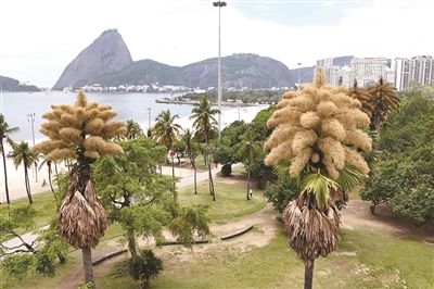 弗拉门戈公园毗邻海滩,可以看到甜面包山。棕榈开花吸引了路人围观拍照。42岁的土木工程师维尼修斯·万尼希望得到幼苗去种,虽然他这辈子可能看不到开花,但它们会为他的后代绽放。
