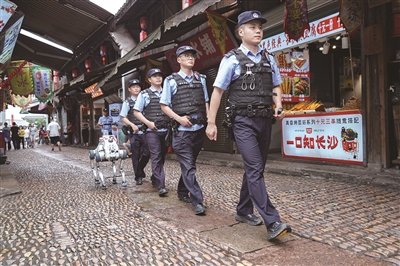 区部署9000余路高清监控、36台高空鹰眼和27架警用无人机,与地面“机器狗”自主巡逻、“热力图”人流预警系统相互配合,形成“空中+地面”“人力+科技”的立体巡防网络。