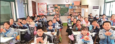 12月8日,杭州市德天实验小学六年级班主任张萃老师在朋友圈分享了两张照片:全班每个孩子手里,都捧着一个大苹果。