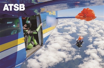 近日,澳大利亚运输安全局公布了一段惊险的画面:一名跳伞者的降落伞缠在飞机尾翼上,导致他在4500米高空悬垂。