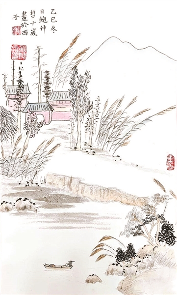插画狮:《秋芦远寺一翁闲》杭州江南实验学校五(10)班 鲍仲哲