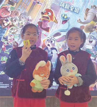 丹枫实验小学的陈若芯和陈若萱,还分别带着两名主角的毛绒玩偶,来到现场。妈妈说:“两位小朋友已经是二刷了,但知道是小记者活动很开心,自己去看更是成就感满满。”