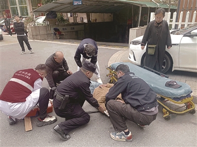马良良说,当时老人趴在地上,情绪有点紧张,但神志还算清楚,“按照医生的指导,由于老人有出血症状,随意移动会有伤口破裂的风险,为防止二次伤害,只好维持老人的现状”。民警一边维护现场秩序,一边鼓励大伯,几分钟后救护车就到了。