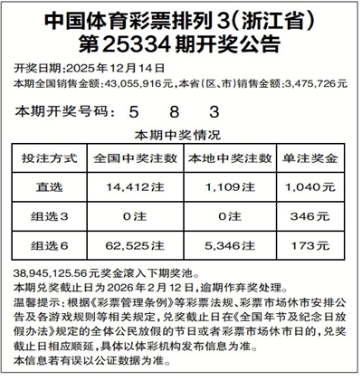 中国体育彩票排列3(浙江省)