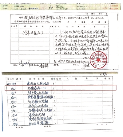 记者经采访得到了《江南春》图卷从划拨、调剂、退藏、销售的相关史料。1986年6月,原文化部制定出台《博物馆藏品管理办法》。之后,南京博物院依照此办法,由原江苏省文物出境鉴定组及南博鉴定人员对一批建议剔除的书画作品进行再次审核,确认不宜入藏。1997年4月15日,南京博物院向原江苏省文化厅提交《关于处理不够馆藏标准文物的报告》,请求“将不够馆藏标准的文物(即博物馆的处理品)进行调剂,价拨给省文物总店处理”。原江苏省文化厅于1997年4月21日同意调剂。1997年5月8日,被专家认定为赝品的《江南春》图卷拨交给原江苏省文物总店,于2001年4月16日被署名“顾客”的购买人以6800元价格购买,销售清单明示为《仿仇英山水卷》。