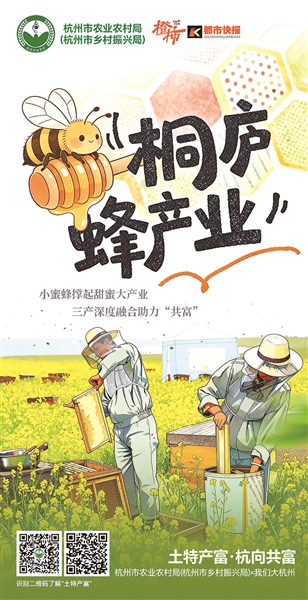这条“甜蜜产业链”正在不断延伸:蜜蜂小镇文化客厅、蜜蜂谷、智慧蜂场、工业旅游点……桐庐串联起十大沉浸式场景,精心打造蜂业旅游黄金线路。