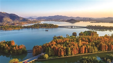这几天,随着大片的杉树变红,湘湖的游人也渐渐多了起来。他们在一座座桥上走过,也许不知道每一座桥的名字和故事,但正如韩建木所说:远远看去,人和桥,桥和湖,就是湘湖最好看的画。