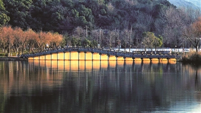 在南宋诗人苏泂眼里,湘湖“草木尽春色,山川如画图”,春樱、夏荷、秋桂、冬杉,花事一场接一场。不变的,是横卧在碧波之上的桥。