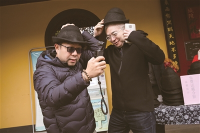 在安昌,你常能看到戴着乌毡帽的中老年男子,这是绍兴男人传统的头饰,也是“三乌文化”中的重要组成部分。最近安昌古镇推出了乌毡帽免费试戴服务,游客可以在乘坐乌篷船、参观各个展馆或游客中心时戴着乌毡帽拍照留念。