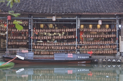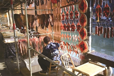 这段时间,安昌古镇的年味已经渐渐浓了起来,“酱货之乡”四季都有的香肠、酱鸭、鱼干迎来了最热闹的时节。这个位于绍兴柯桥西北面的小镇始建于北宋时期,明清重修,如今从建筑样貌到居民生活都保留着原汁原味的江南水乡特色,被称为“活着的古镇”。