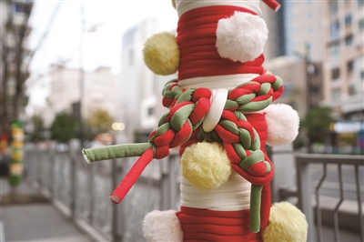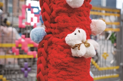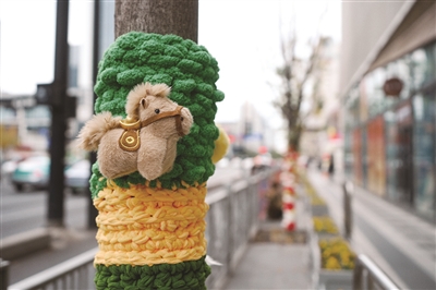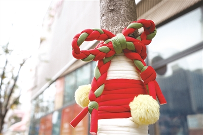 夜幕渐渐降临,路灯亮起,暖黄色的灯光从毛线的缝隙间透出来。举着奶茶与树合影的小情侣,在等红灯间隙停车抓拍的上班族女孩,牵着孩子驻足的年轻妈妈——“妈妈,树怎么穿衣服了”“因为它们也想暖暖地迎接新年呀”……这一切,在这寒冷的日子里,构成了一幅温暖的画面。