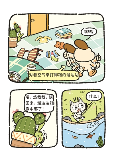 家里的仙人掌突然发现,溜达达的举动变得很奇怪,他对着空无一人的地方拳打脚踢,嘴里还念念有词。仙人掌吓了一跳,立刻打电话给在外面钓鱼的悠哉哉。