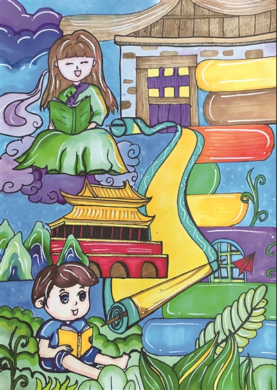 插画狮:《书山有路》杭州市星洲第二小学五(6)班 刘亦晨