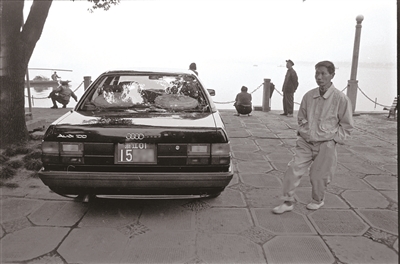 老懈拍摄的一组西湖湖滨六公园,充满了老杭州人的记忆, 图片拍摄于1990年前后。湖边游人如织,有吹拉弹唱的本地居民,还有擦鞋为生的小摊贩,一辆奥迪轿车,停靠在西湖边。当年,车子可以开到湖边上欣赏风景,而奥迪车,在杭州还是比较稀少的。湖边,两个阿姨在翩翩起舞,旁边一长排的阿姨头戴白毛巾。