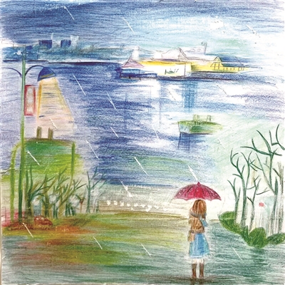 插画狮:《雨中即景》杭州天地实验小学五(7)班 王栎翎 指导老师:孙佳烨