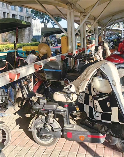 1月7日上午,橙柿直通车记者来到黎南名苑,在小区中间有两排充电桩,充电桩上贴有“电动自行车充电桩价格公示”牌。