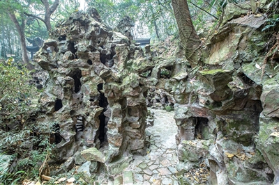 西湖边规模最大的假山洞景