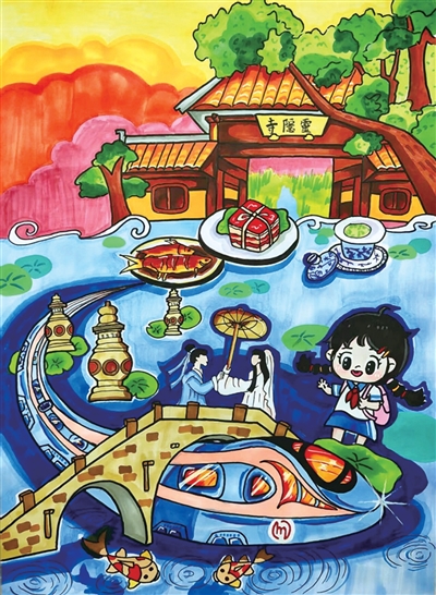 插画狮:《童绘西湖韵》杭州市半山实验小学五(5)班 何雨萱