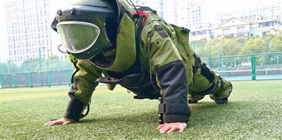 “有的排爆手,头围可能比较小,第一次戴头盔会晃动,这就需要排爆手对防爆服进行相应的调节,当然,过于瘦小的人,可能难以负担防爆服70斤的重量,而我们的要求是,能够穿着这套衣服,还能做到精密作业,保证万无一失。”