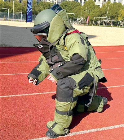 郑桢楷演示的这套防爆服已经服役20年,目前退居二线,主要用于穿戴训练,一线实战技术大队还有更加先进的装备。
