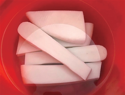 清水养年糕在科学上也是有一定道理的。年糕富含糖分、淀粉、碳水化合物等成分,很容易滋生细菌、霉菌等有害微生物,从而导致发霉变质,泡在水里则可以很好地隔绝空气中的氧气,从而起到延长年糕食用期的作用。另一方面,年糕是用糯米、粳米制作的,冷却后会变硬,加上存放时水分的流失,进一步导致口感变差,而采用泡水保存的方法,可以维持年糕中的水分,保持口感软糯。