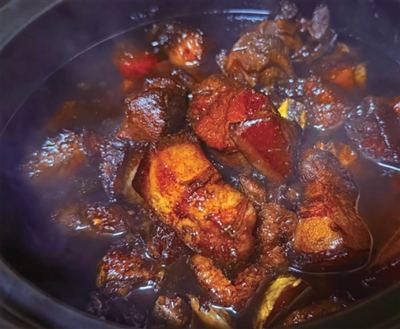 这种烧法,比较考验猪肉的品质,普通猪肉如果这么做,腥味儿比较大。