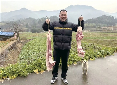 好物担当康康手提两条土猪肉