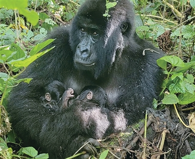 刚果(金)维龙加国家公园山地大猩猩马福库近日生了一对双胞胎,均为雄性。公园方面说,此事对这一濒危物种而言意义重大,“罕见且非凡”。