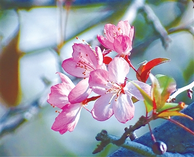 垂丝海棠花误以为春天到了,在冬日里开放。橙友“江一” 摄