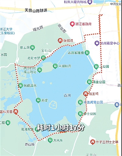 现在西湖周边的还车点分布并不平均。北山街、杨公堤这一带,目前只有一个还车点;南山路雷峰塔景区附近,基本没有还车点。东线情况好许多,从长桥公园到少年宫广场,因为靠近城市主干道,一路都有不少电子围栏还车点。