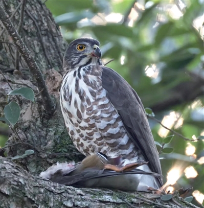 “杭州植物园凤头鹰吃鸳鸯!”